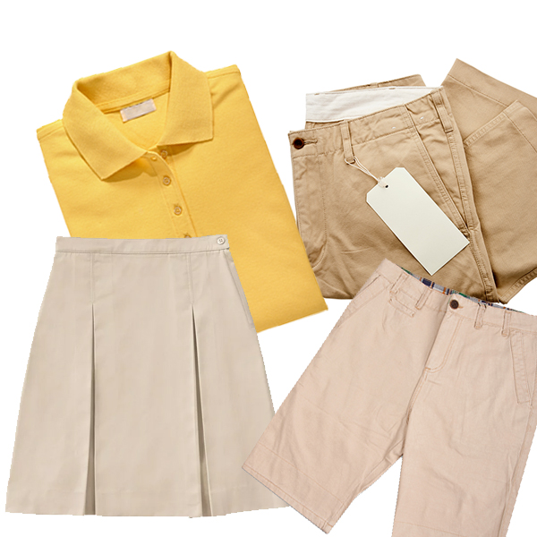 Bottom: Khaki bottoms (pants, skirt, shorts)